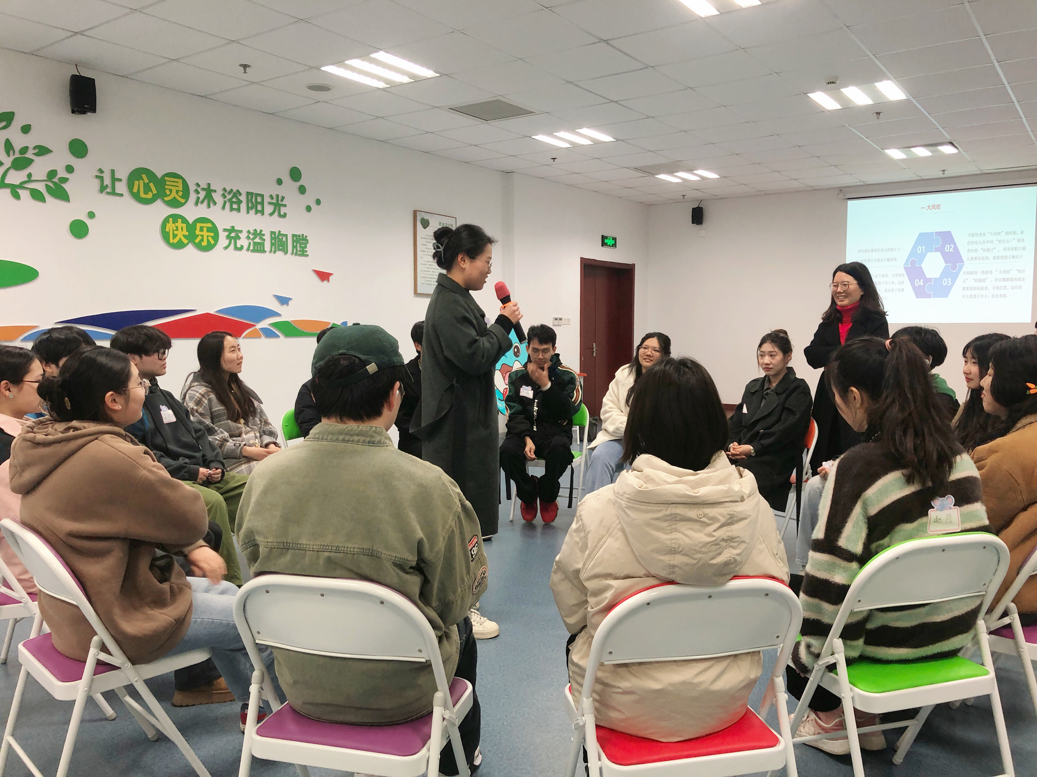 在六期情绪管理团体成长活动中,刘佩佩老师分别以情绪的自我探究、剖析梳理、情景演绎等方式,引导同学们在支持、接纳的氛围中识别情绪、分享情绪体验、觉察认知模式、学习正确调节情绪的方法。