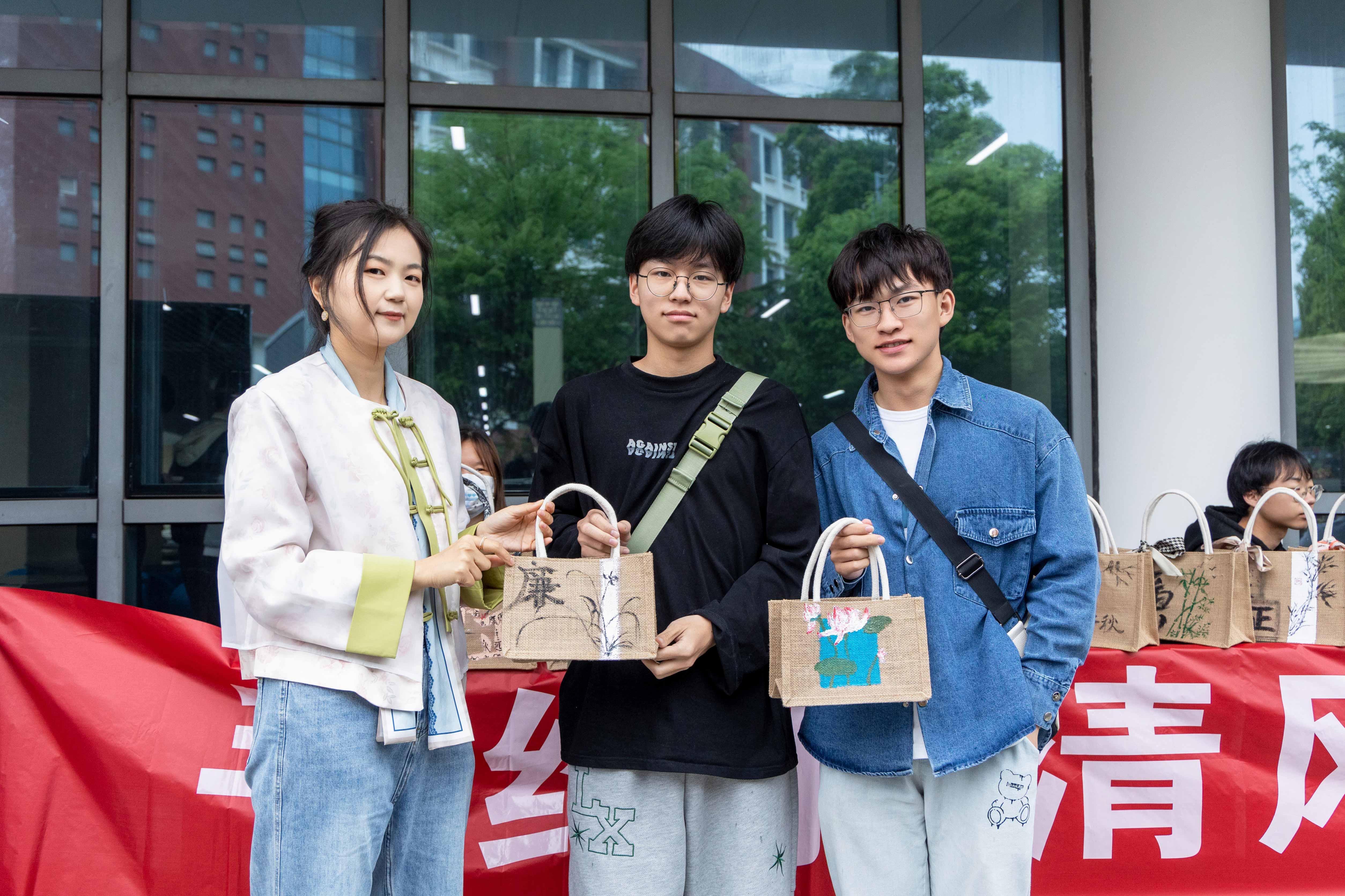 为深入学习贯彻党的二十大精神,贯彻落实党中央《关于加强新时代廉洁文化建设的意见》,进一步学习常州大学第三次党代会精神,加强学院“清风正气•廉韵怀德”廉洁文化品牌建设。4月17日上午10点半,由纪检(监察)与审计办公室主办,艺术系承办的“手绘扬清风,共筑廉洁梦”集赞赠手绘手提包活动在一食堂门口火热开展,学院师生积极参加。