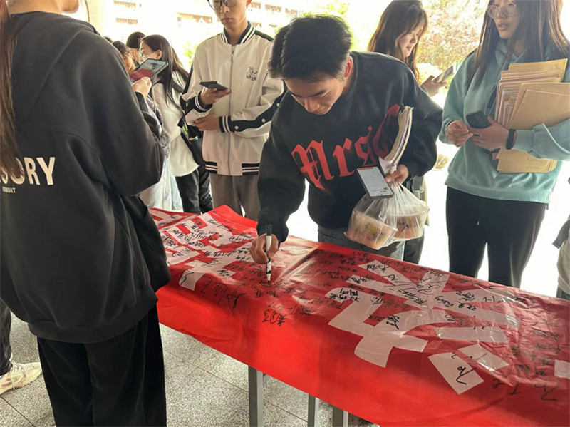 为迎接“世界地球日”的到来,使校园成为绿色环保的示范地。4月19日中午,由社团管理部主办、绿色协会承办的“全球战塑”世界地球日主题活动在二食堂门口举行,此次活动得到了全院师生的积极参与和支持。