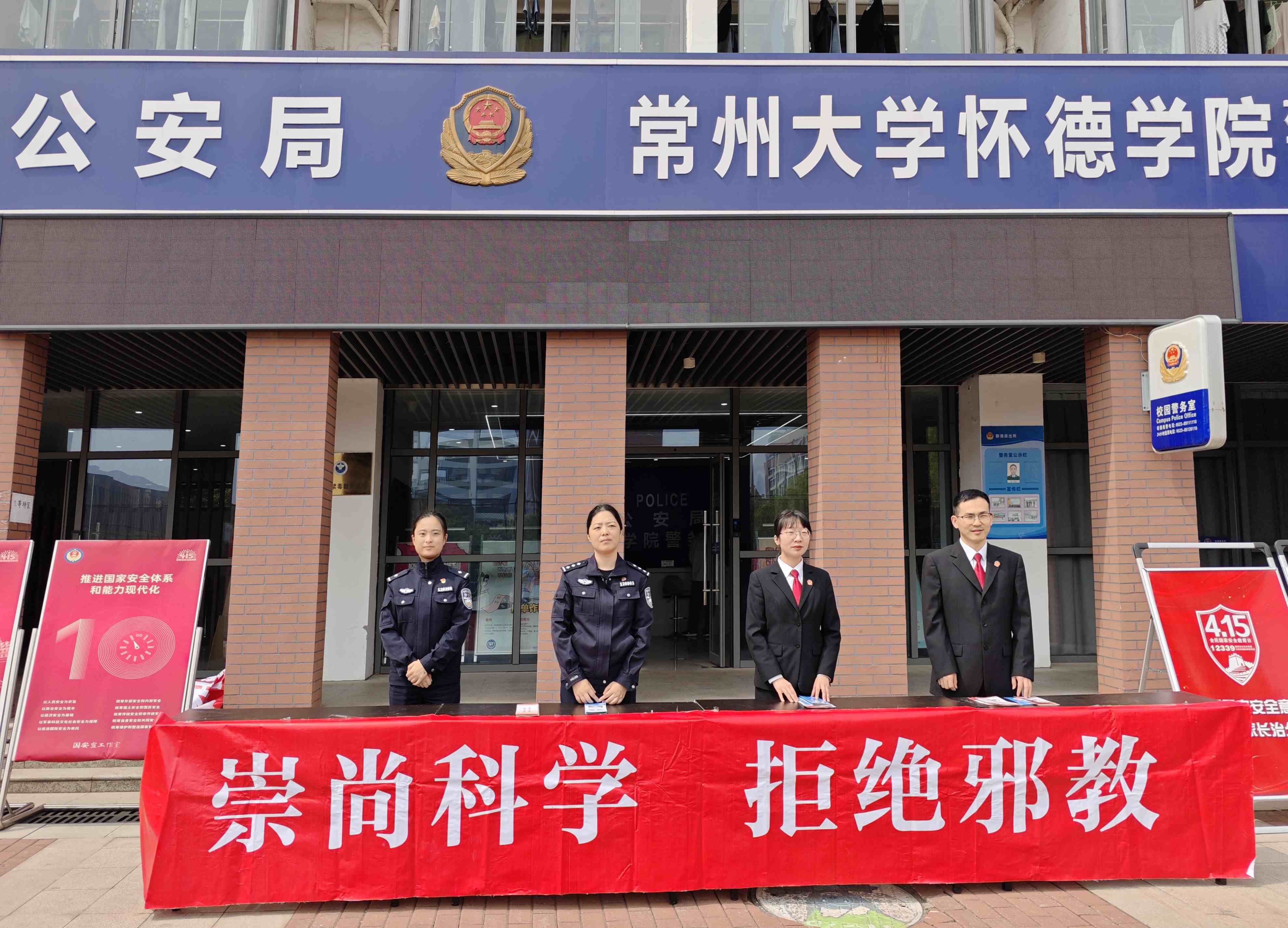 多渠道联合,提升教育实效。学院联合靖江市公安局、靖江市检察院,在学生公寓8号楼警务室广场举办了以“全民国家安全教育 走深走实十周年”为主题的国家安全教育日活动。通过设置展板、悬挂横幅、发放宣传册等形式开展宣传教育,公安民警结合高校实际,通过生动真实的案例宣讲了国家安全相关知识,过路师生纷纷驻足观看,反响热烈。计算机243尚鹄同学表示,“国家安全来之不易,我们每个人都是责任人,要守住我们心中国家安全这道红线。”为了让同学们深刻意识到维护国家安全没有“局外人”,民警又组织了国家安全教育访谈活动,向师生剖析了危害国家安全的主要因素,指导师生识别抵制邪教及境外宗教渗透方法,并现场解答了同学们提出的相关问题,提醒师生时刻绷紧安全弦,一眼识破风险隐患。