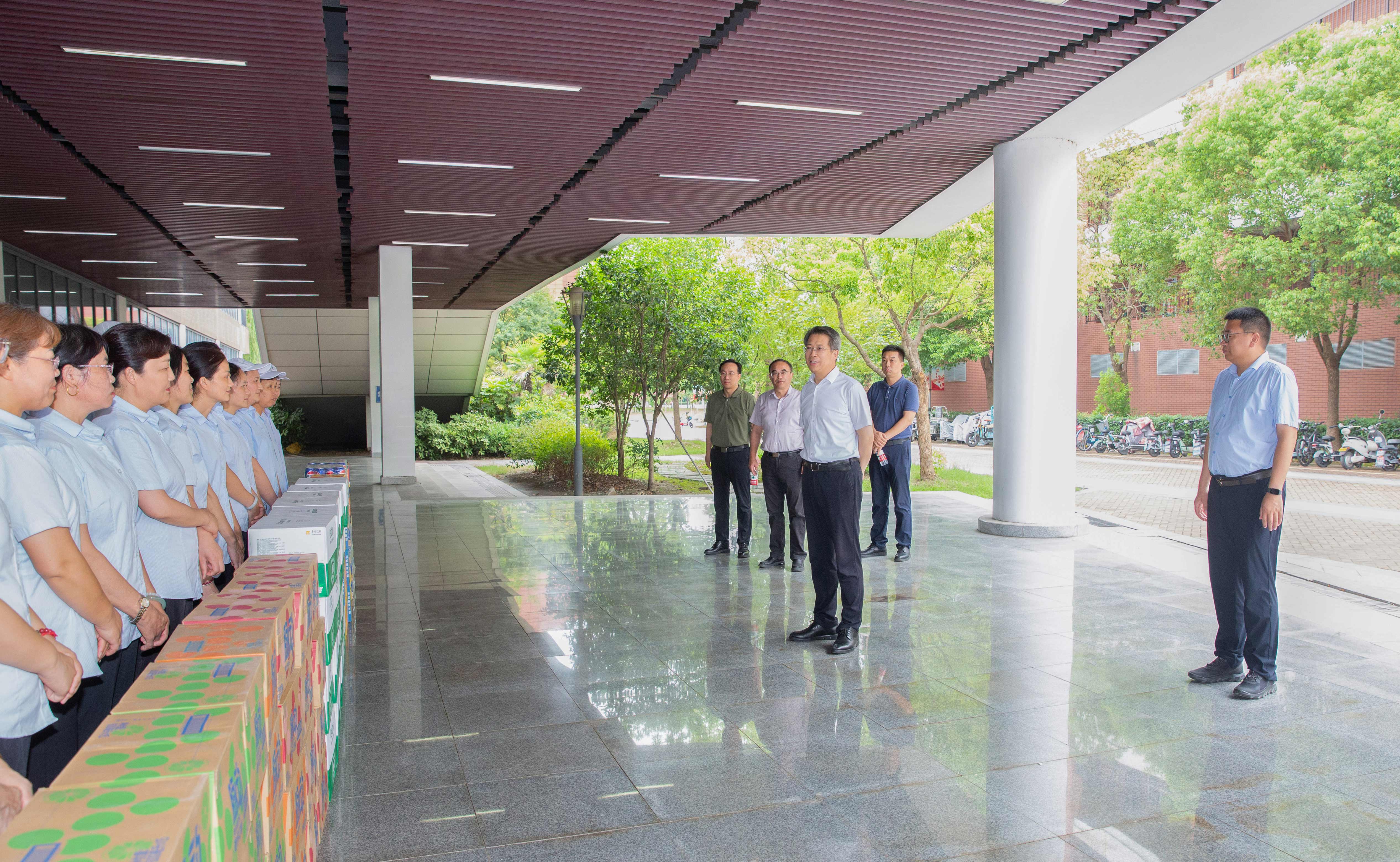 校领导先后走访教师公寓、学生公寓、食堂等场所,向大家致以亲切慰问,详细询问暑期工作开展、安全保障及防暑措施等情况,肯定他们在酷暑中为保障学校有序运行所付出的努力,并叮嘱大家务必注意高温防护,合理安排作息。