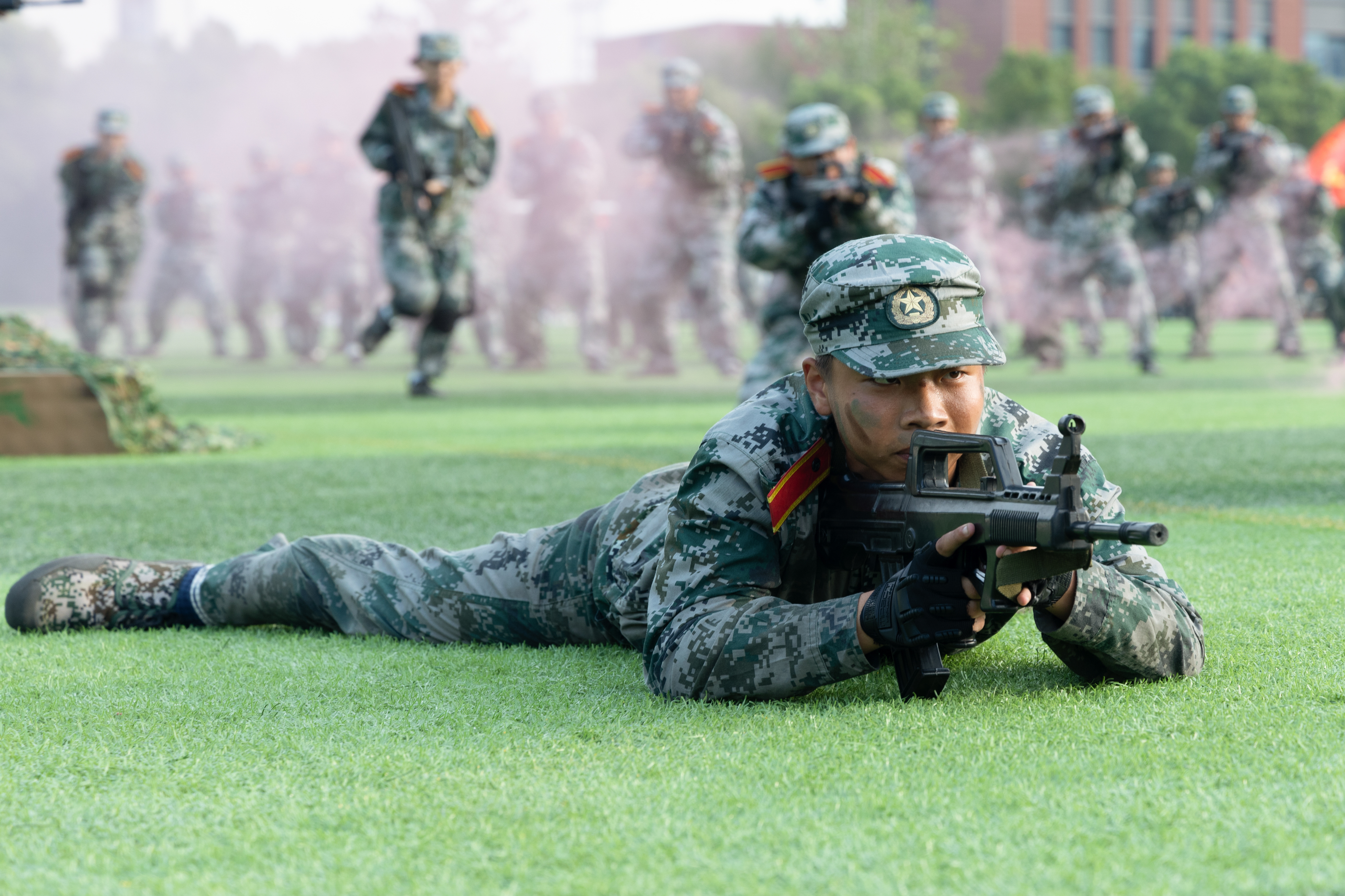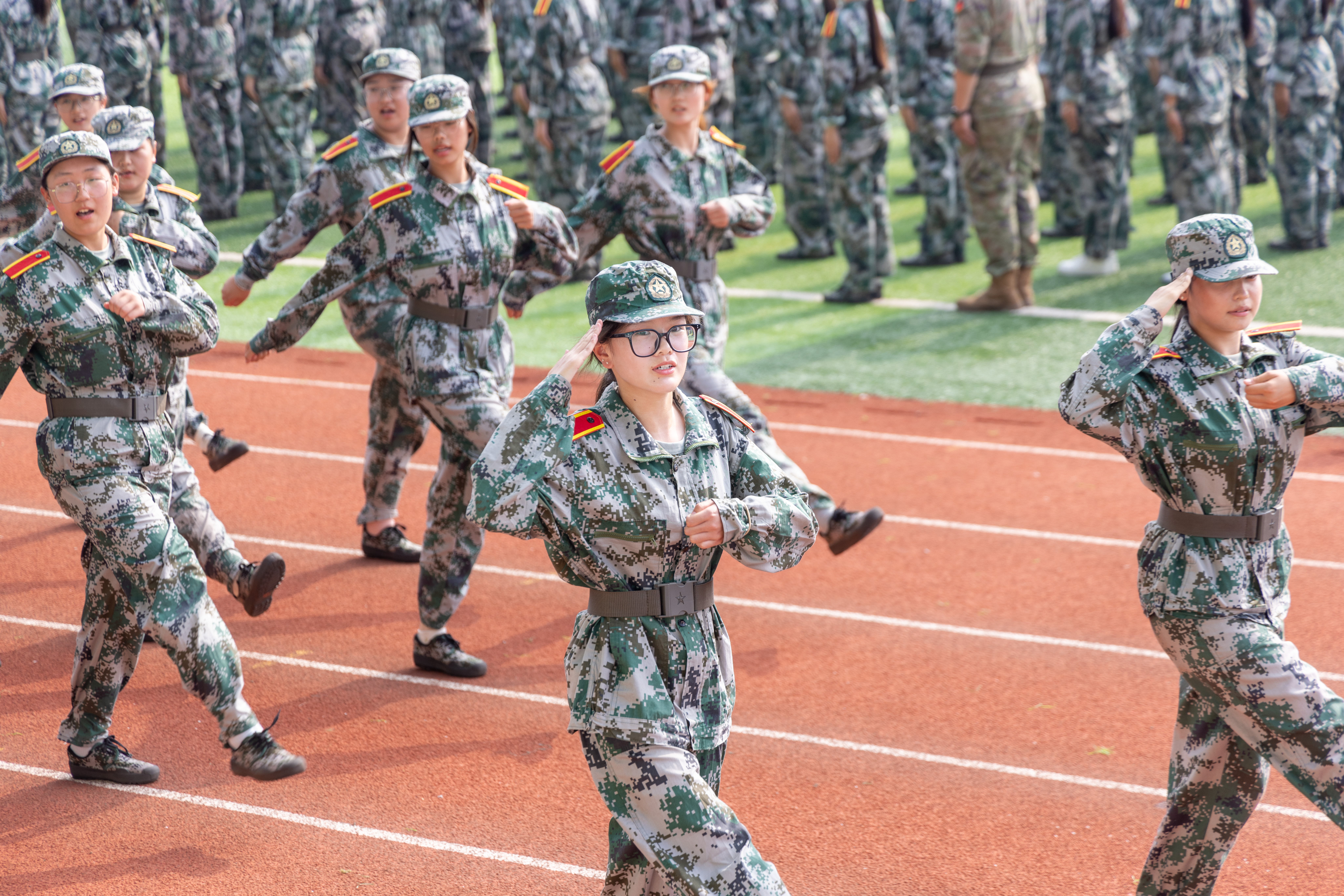 此次军训共计2800余名学生参训,分为九个连队和6个综合军事技能方阵。训练场上,同学们摆臂整齐划一,踢腿刚劲有力,从最初的步调凌乱到如今的“千人如一”,这变化的背后,是无数次重复的摆臂练习,是腿部负重的额外加练。同学们体会了军姿训练的艰辛,也从最初的陌生与不适,转变成如今的默契与坚韧。