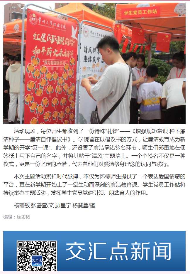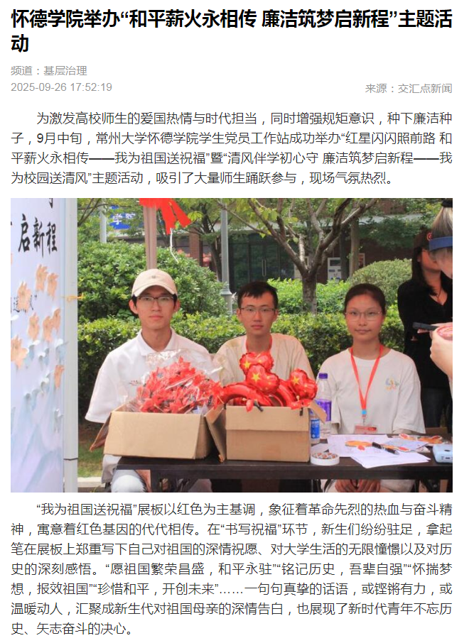 【交汇点新闻】怀德学院举办“和平薪火永相传 廉洁筑梦启新程”主题活动