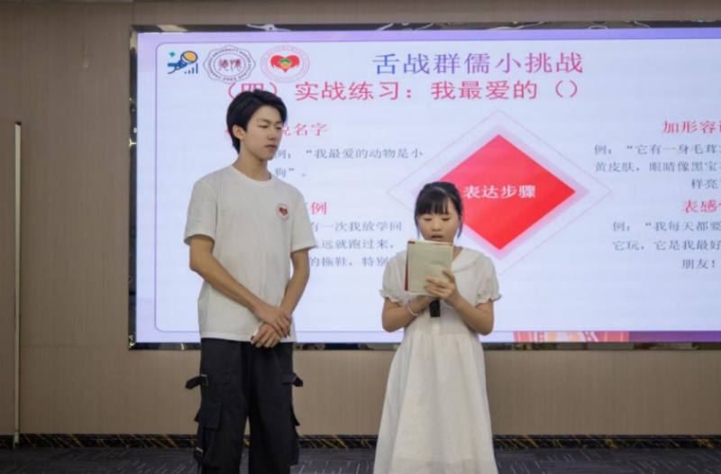 在支教团成员吴晨涛的悉心指导下,孩子们通过系统化的口才训练课程,不仅掌握了逻辑表达的要领和标准发声技巧,更在潜移默化中培养了勇于表达、善于沟通的综合素养。这种语言能力的提升不仅改善了当下的学习表现,更为他们未来的成长发展注入了关键竞争力。(供稿人:常州大学怀德学院 吴晨涛)