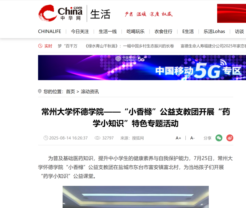 为普及基础医药知识,提升中小学生的健康素养与自我保护能力,7月25日,常州大学怀德学院“小香橼”公益支教团在盐城市东台市富安镇富北村,为当地孩子们开展“药学小知识”公益课堂。