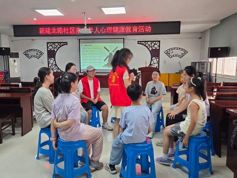在“童心绘安全 暑期乐悠悠”安全主题活动中,大学生志愿者借助图文和身边案例讲解,帮助社区儿童提升防溺水、防火以及用电安全、交通安全等方面的知识,并以绘制“家庭安全守护卡”的形式,将安全提醒融入日常生活,加深孩子们对安全知识的理解与记忆。在心理健康教育课堂上,大学生志愿者以“我的心情我做主”为题,通过情景模拟、互动问答以及“情绪大风吹”“心灵互助松鼠树”等趣味游戏,引导孩子们认识情绪、管理情绪,学会用合理的方式表达和释放情绪,积极面对生活中的小情绪、小烦恼。