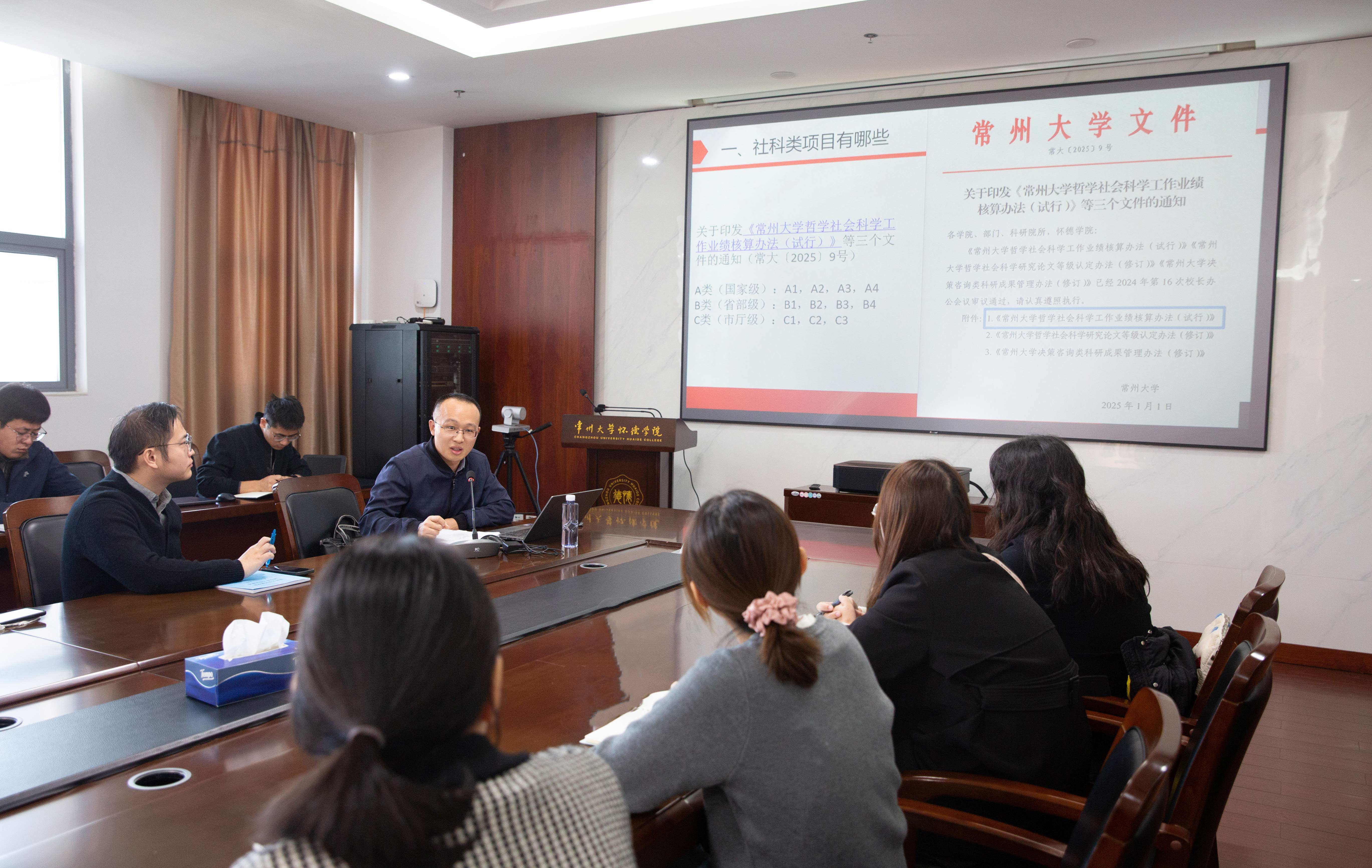为进一步提升我院人文社会科学研究水平,激发教师科研申报积极性,切实提高高级别项目的申报质量与成功率,10月28日上午,常州大学人文社科处副处长申锋老师应邀到我院,作了题为“社科类项目申报的探索与思考——以国家社科基金申报为例”的专题讲座。院长何岩峰、副院长王社国出席会议,各系部教师代表积极参加。讲座由王社国主持。