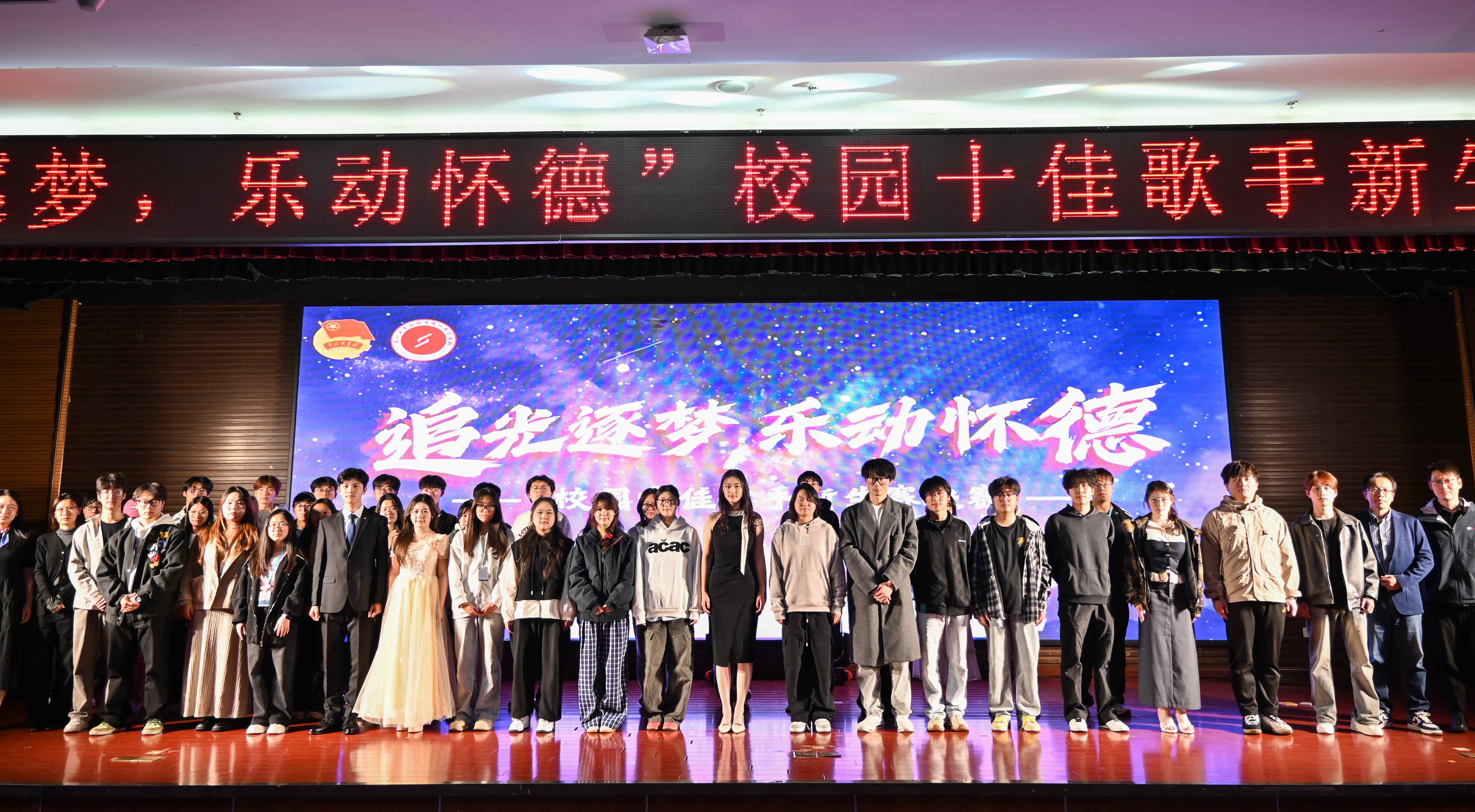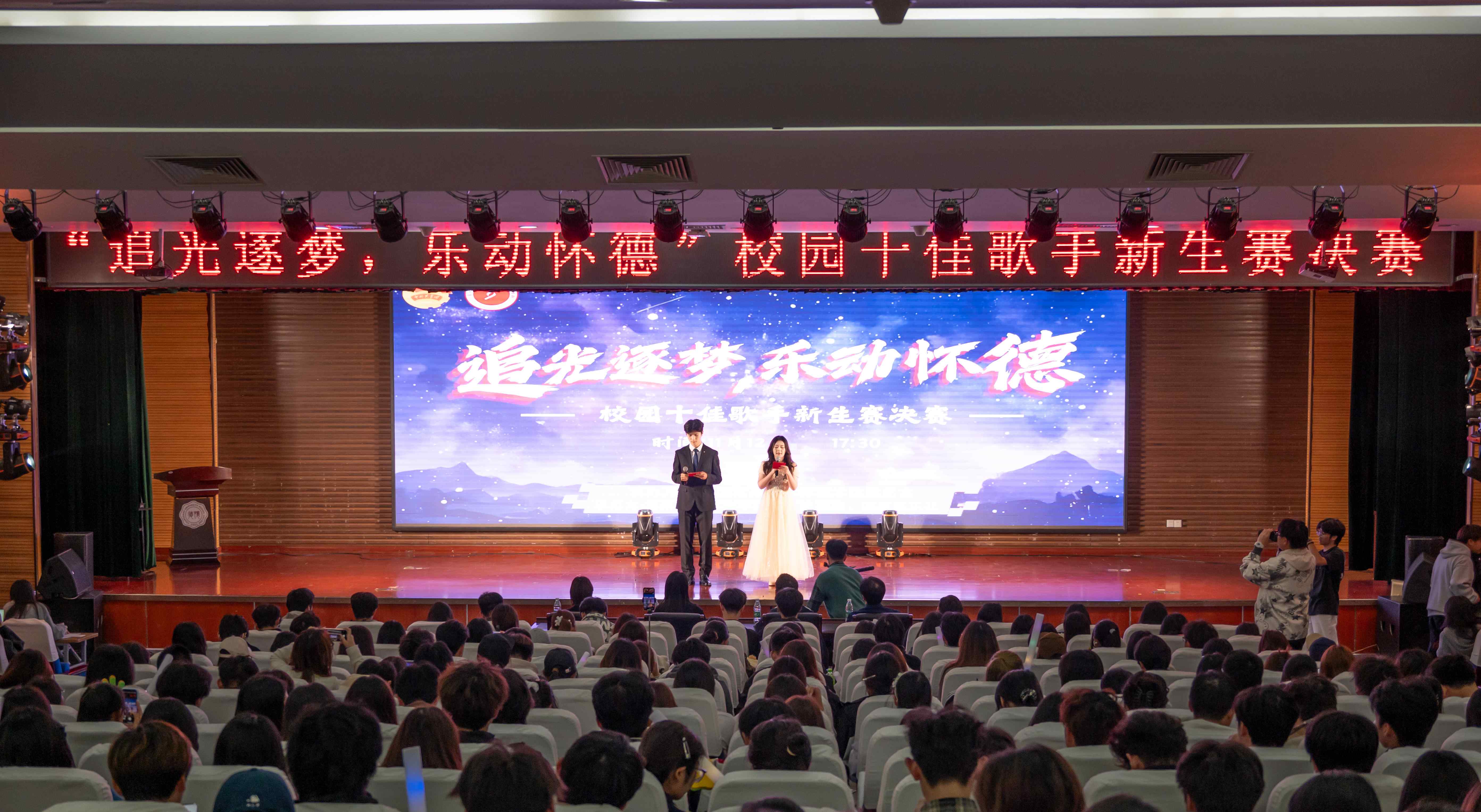 追光逐梦,乐动怀德。近日,第十八届校园十佳歌手新生赛决赛在怀德楼报告厅激情唱响,点燃了全院师生的音乐热情,引爆了校园文化氛围。