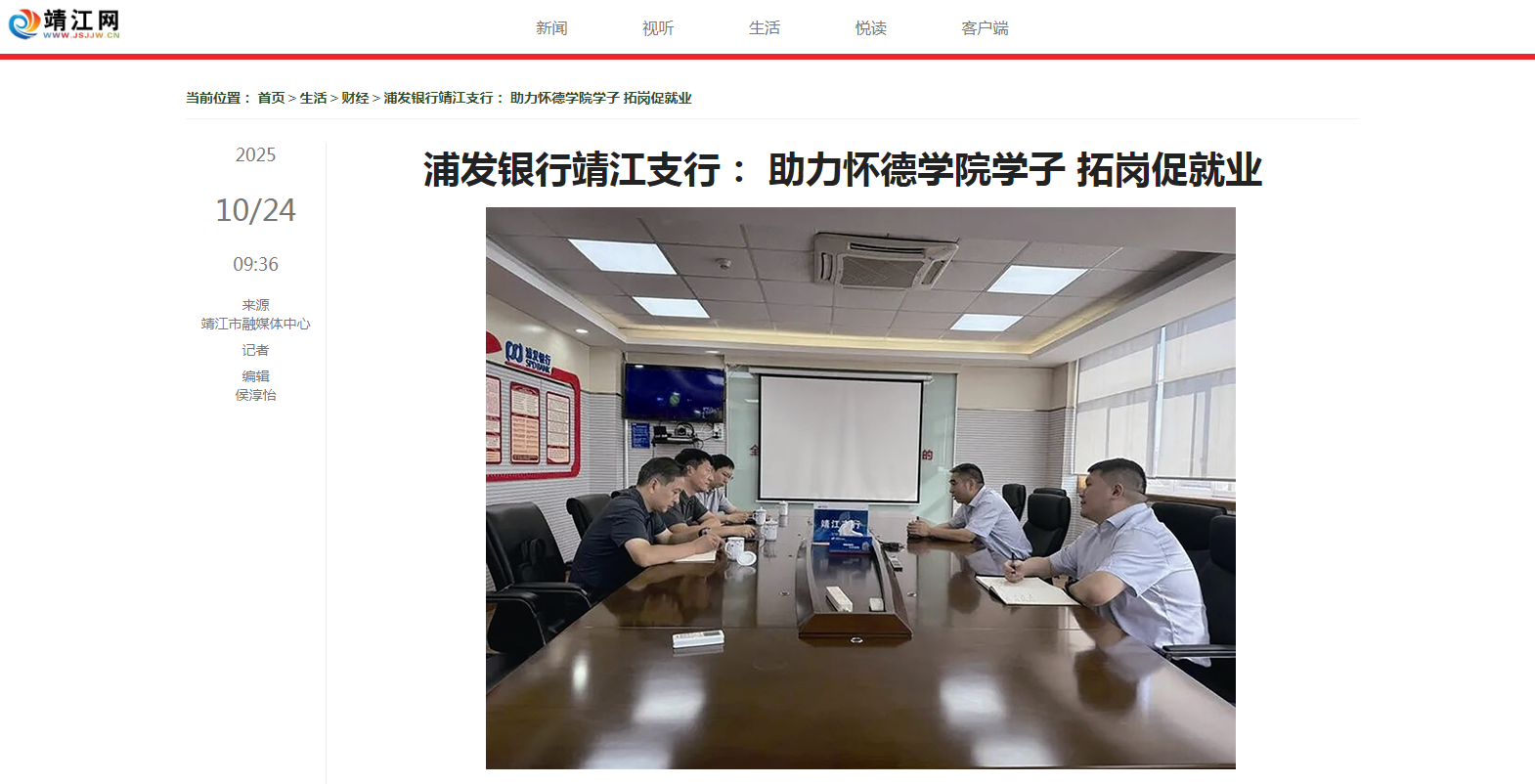 为深入贯彻国家关于高校毕业生就业工作的决策部署,进一步拓宽就业渠道、提升就业质量,常州大学怀德学院院长助理陆泉名一行到浦发银行靖江支行开展访企拓岗专项行动。