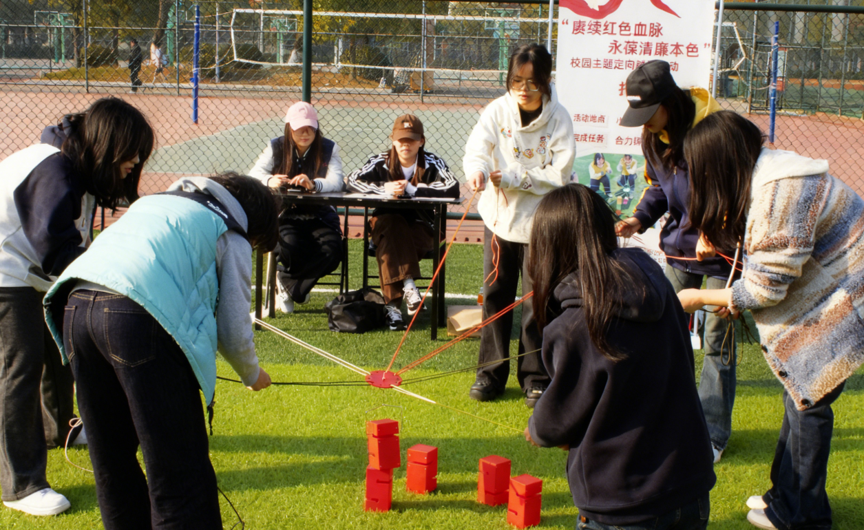 本次定向越野在校园内设置了多个打卡点位,涵盖学校北门、二食堂门口、南门、小足球场、操场等区域。活动精心设计了“你划我猜”“接廉不断”“合力铸廉”“重走革命路”“车轮滚滚”等趣味闯关任务,将党史学习与廉洁教育融入互动体验,让参与学生在寓教于乐中回顾党的峥嵘岁月,体悟廉洁文化的深刻内涵。来自各系部的近100名参赛选手组成15支队伍,以徒步越野与通关打卡相结合的方式展开角逐。比赛中,各团队协作默契,齐心协力完成各项挑战,现场气氛热烈。大家在轻松互动与友好竞技中,不仅体会到团队合作的重要性,也进一步增强了对红色文化和廉洁理念的认同。
