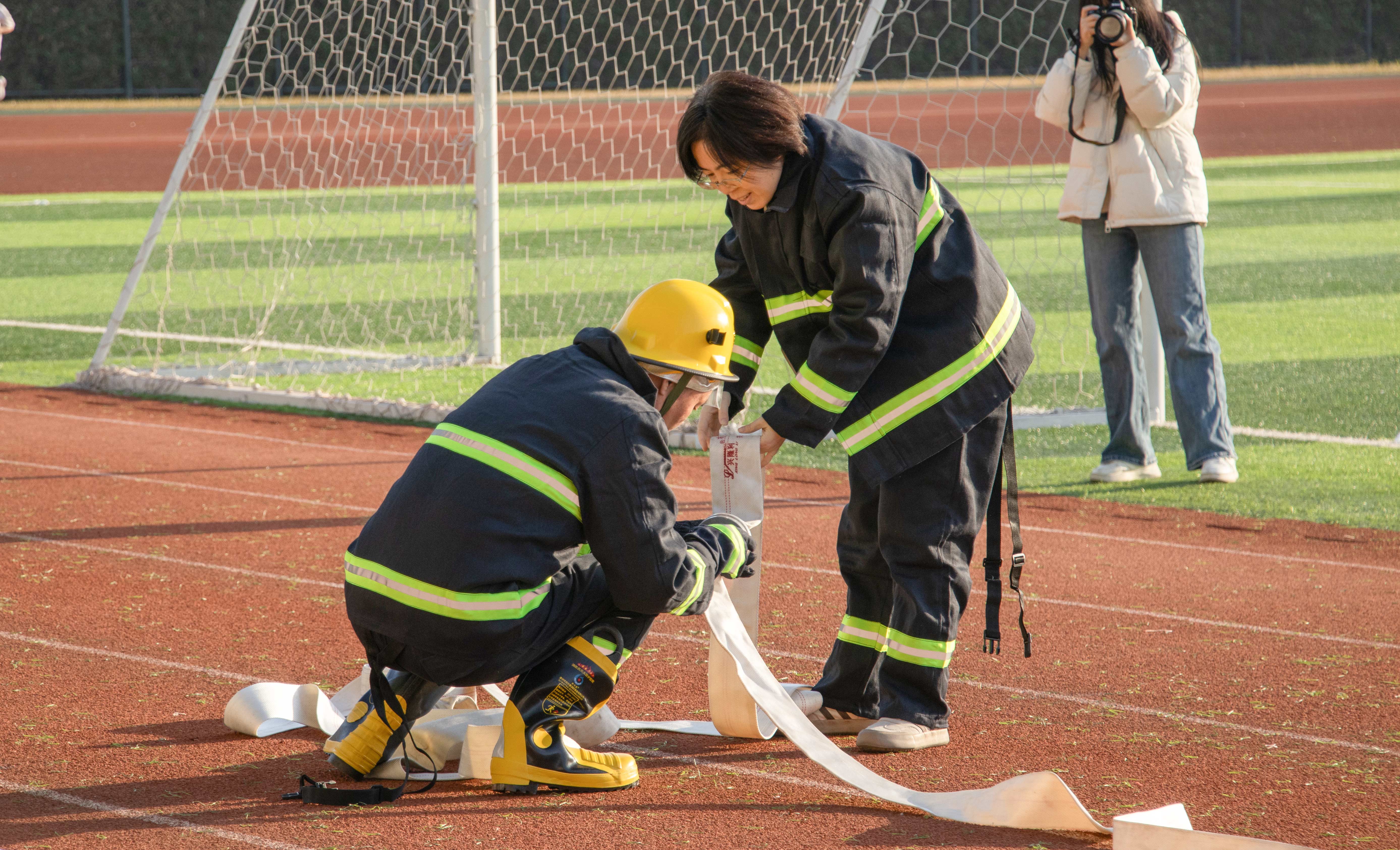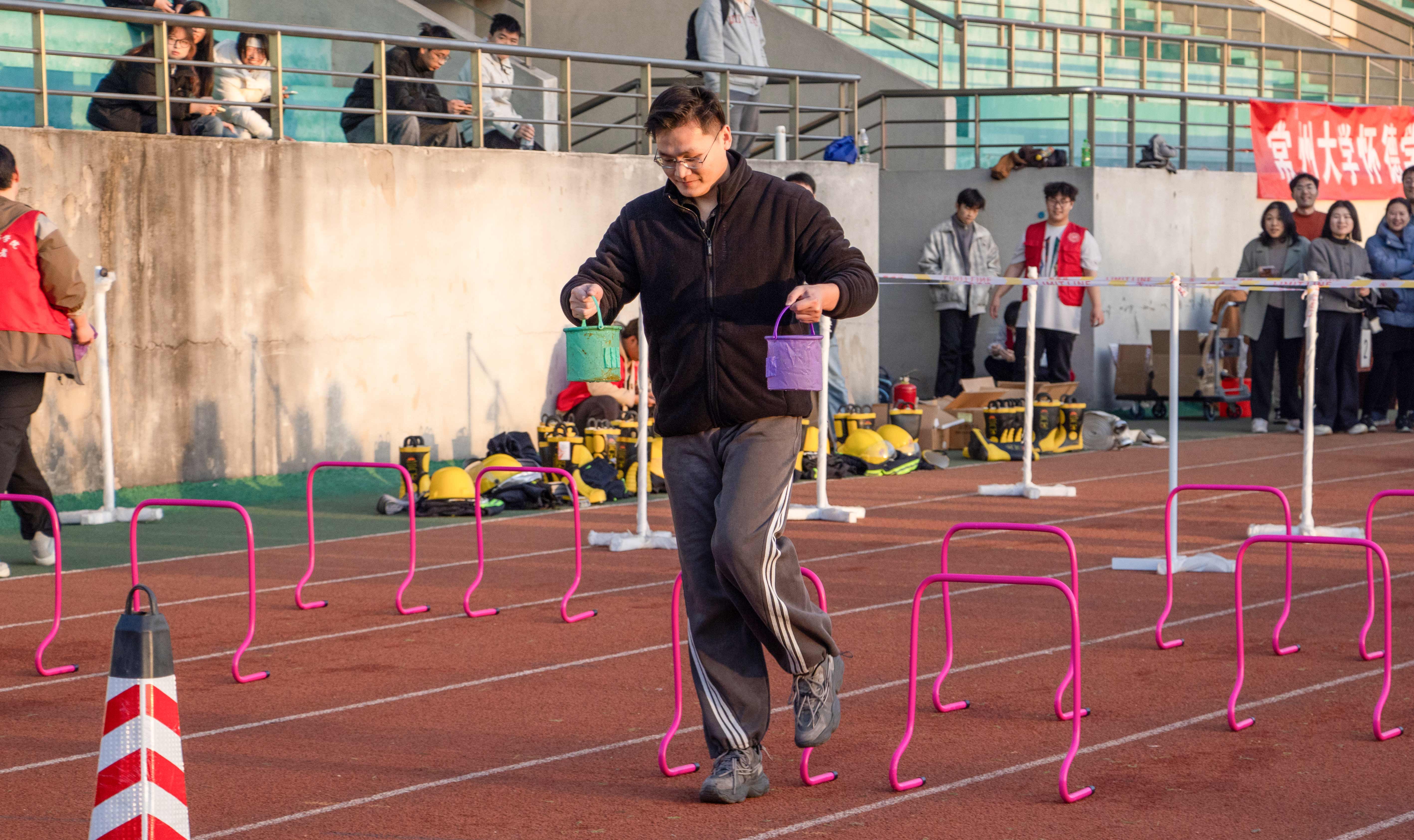 全民消防,生命至上。为切实筑牢校园安全防线,提升教职工应急避险与自救互救能力,11月26日,常州大学怀德学院第四届消防运动会在学院田径场举行。副院长王社国,院长助理陆泉名、章诚出席活动,110余名教职工参加比赛。