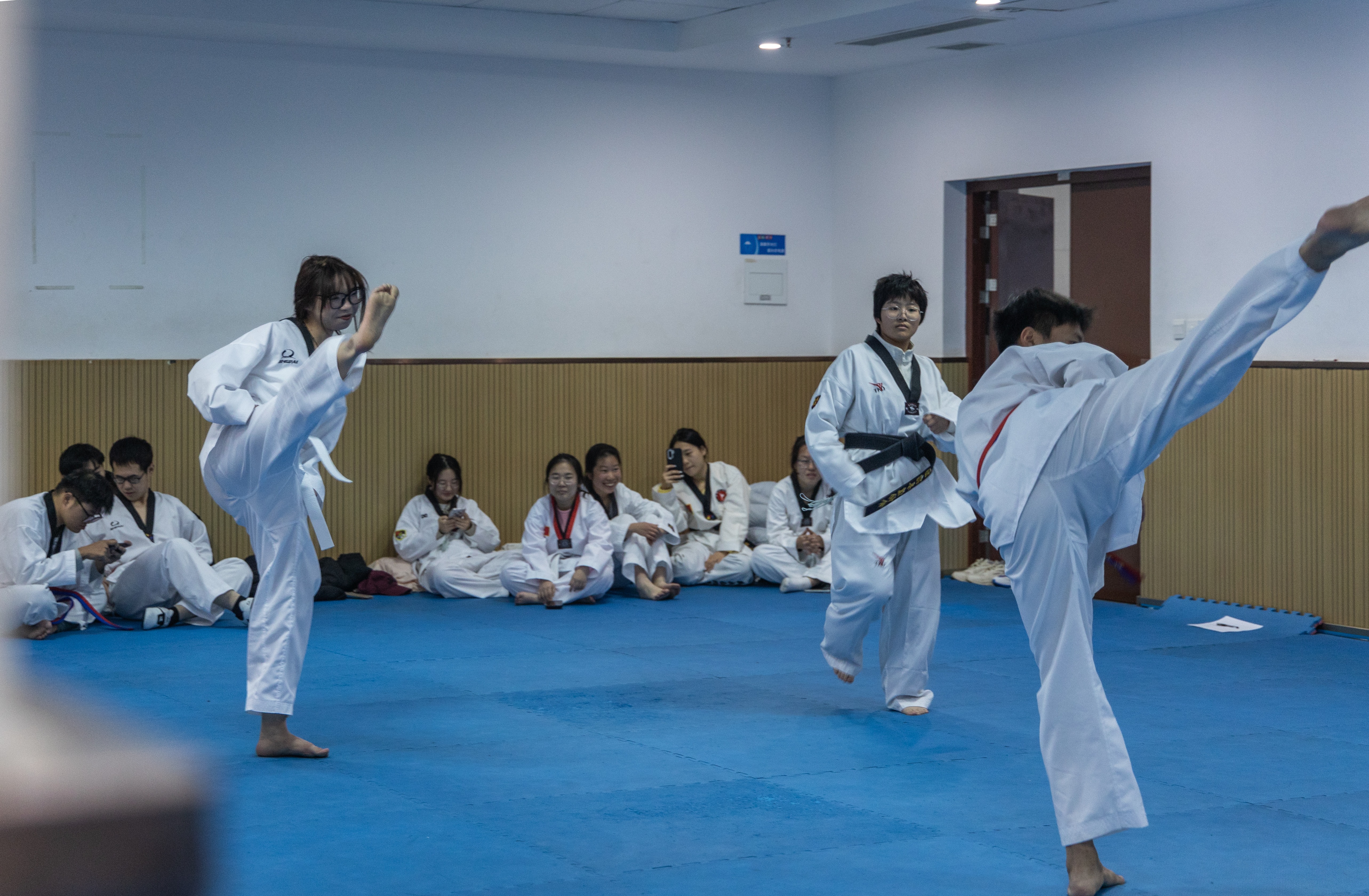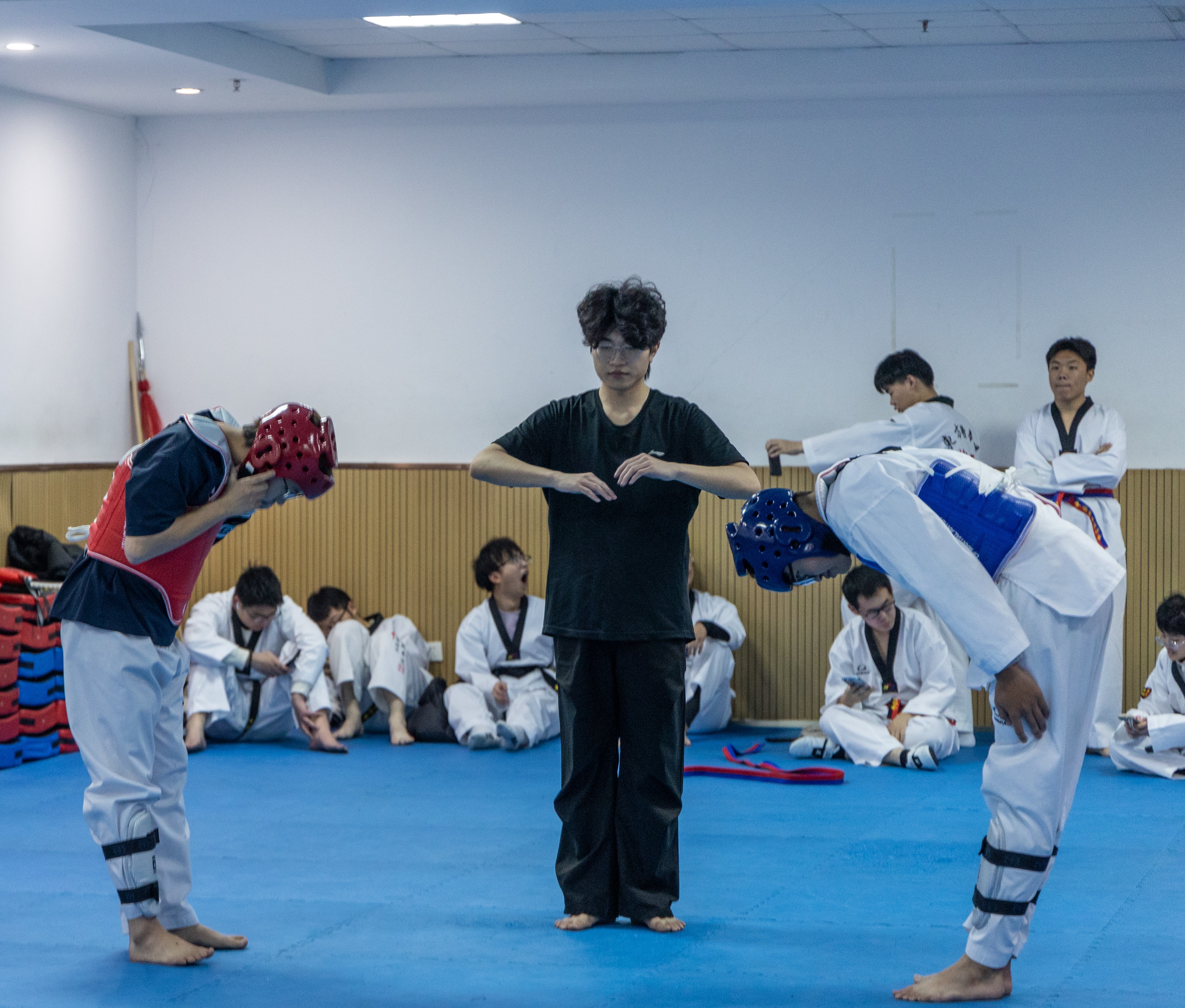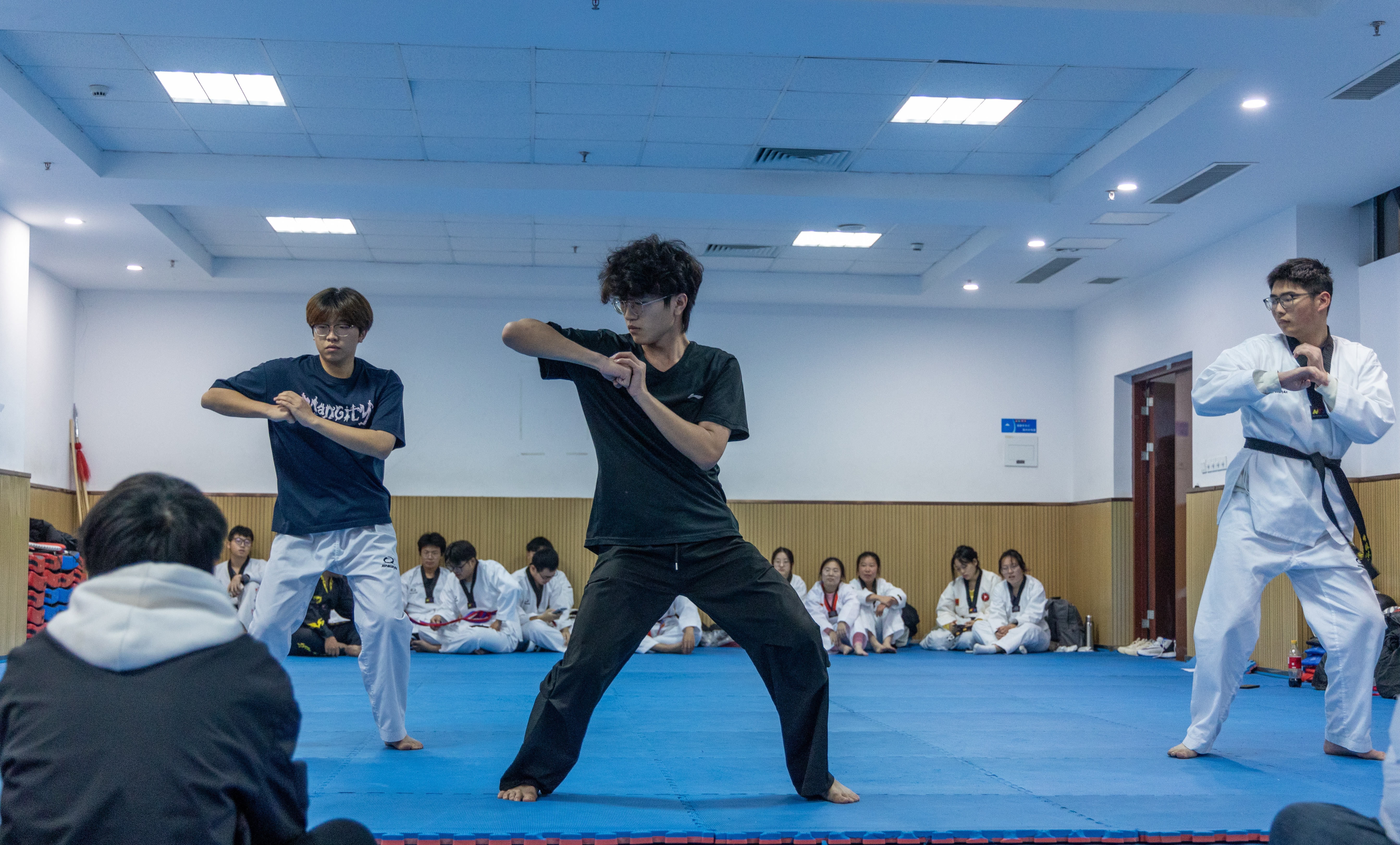 动静结合,释放青春活力。星动篮球社为同学们带来了多维度的篮球体验,通过“NBA赛事赏析与球星风采解析”,带领大家深入领略篮球运动的战术奥义与巨星风采;跃动排球社则通过教学与友谊赛,让同学们在挥洒汗水中感受团队精神;Fly轮滑社同步开展轮滑基础教学,将理论学习与户外实践紧密结合;跆拳道社则在刚柔并济的练习中,锤炼同学们的意志与体魄。