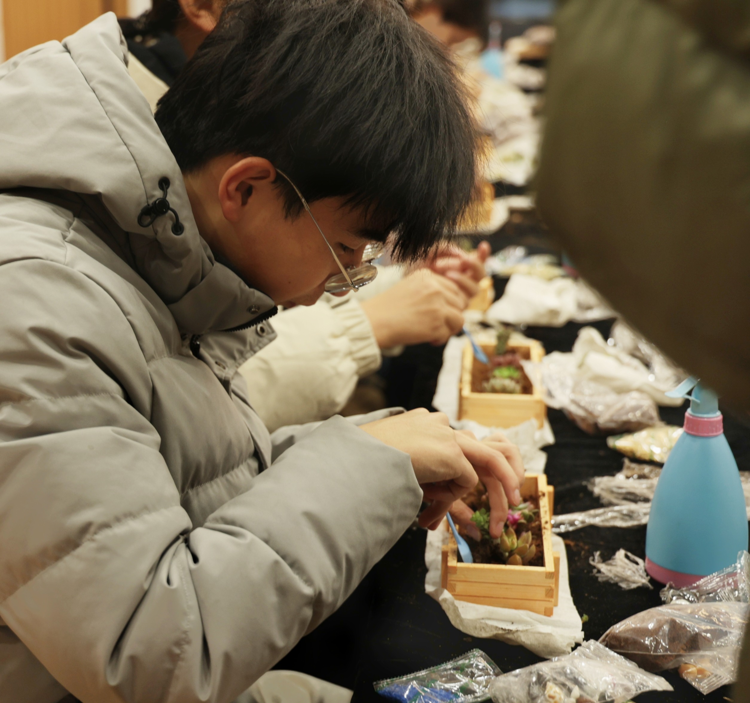传承匠心,感受文化魅力。木作技艺保护协会的“榫卯拼图”、DIY社的“竹编画”、绿色协会的“多肉种植”,让传统技艺与自然之美触手可及;潇湘文学社的“掐丝珐琅”、书画篆刻社的“楷书临写”以及钢琴社的“黑白琴键”课程,更是引领同学们沉浸式领略了非遗、书法与音乐的艺术熏陶。
