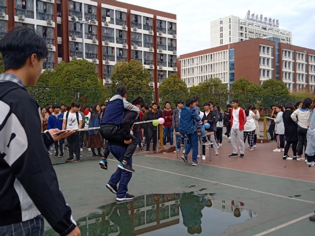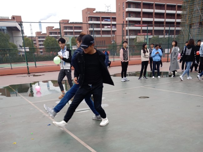 本次活动项目由 “瞎子”背“瘸子”、猜五官、背对背拥抱、三人绑腿往返跑组成。趣味十足。活动过程中工作人员认真负责,同学们情绪高涨,积极参与。