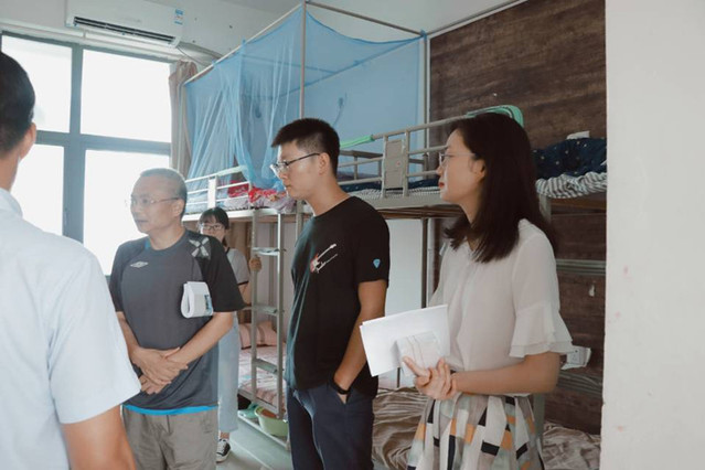 为切实了解新生需求,帮助学生更好的适应大学生活,2019年9月8日下午,机械与材料工程系主任、党总支书记张锁龙,党总支副书记朱骥洪,及新生辅导员一行走访学生宿舍。