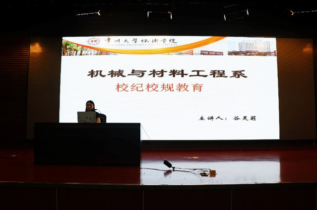 为了加强机械与材料工程系新生对校纪校规的了解,我系于9月10日下午在报告厅举行校纪校规教育讲座,本次专题讲座由机材系团总支书记谷灵莉主讲,机械与材料工程系全体新生参加。