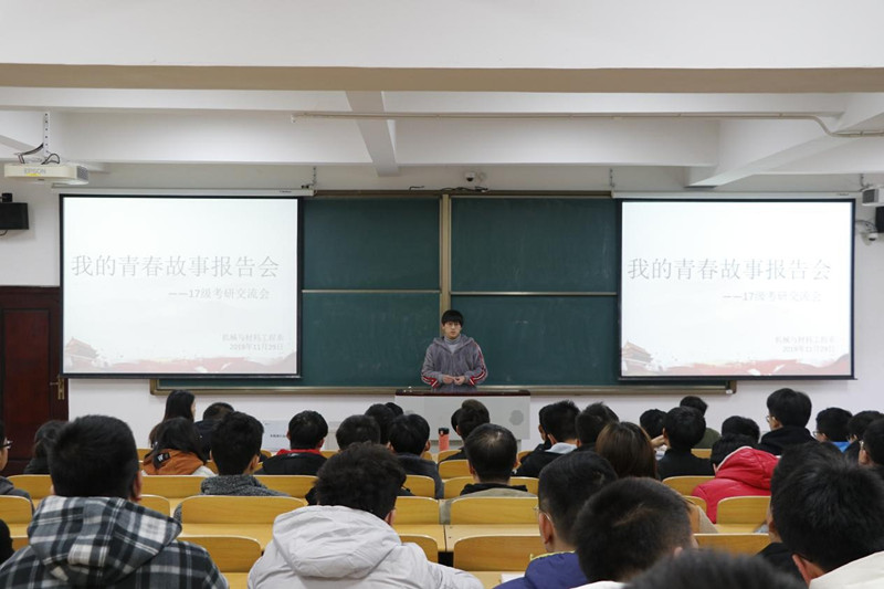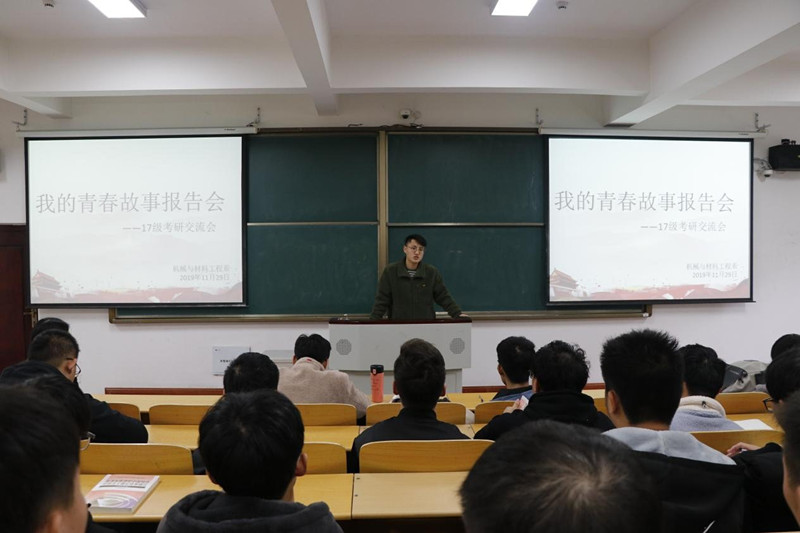 11月29日,机械与材料工程系在A1阶教室举行了“我的青春故事报告会”,机械与材料工程系团总支书记谷灵莉主持,15级潘爱鹏、龚柯健担任主讲,机械与材料工程系17级考研学生参加此次报告会。
