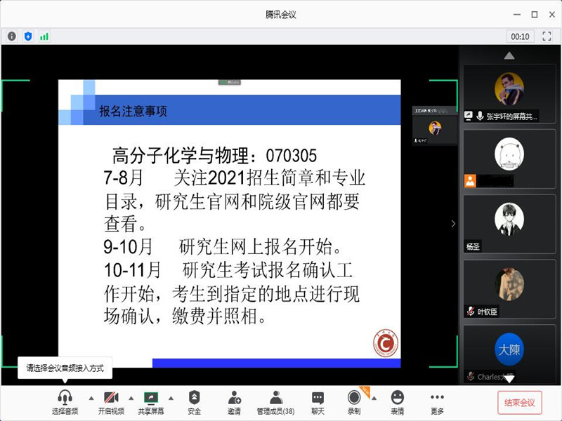 为帮助同学们明确考研目标,增强考研斗志,7月8日下午,机械与材料工程系举办了线上考研经验交流会,大二、大三全体考研意向学生参加。