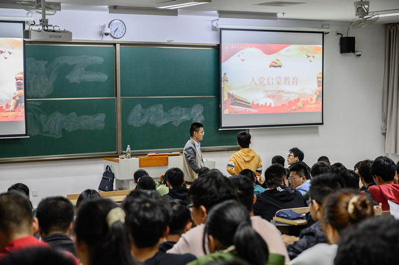 芮进为同学们仔细讲解了中国共产党的党史党情,党员要求、入党流程、入党动机等相关情况,并期望同学们不断提高政治觉悟,在学习生活中发挥模范带头作用。