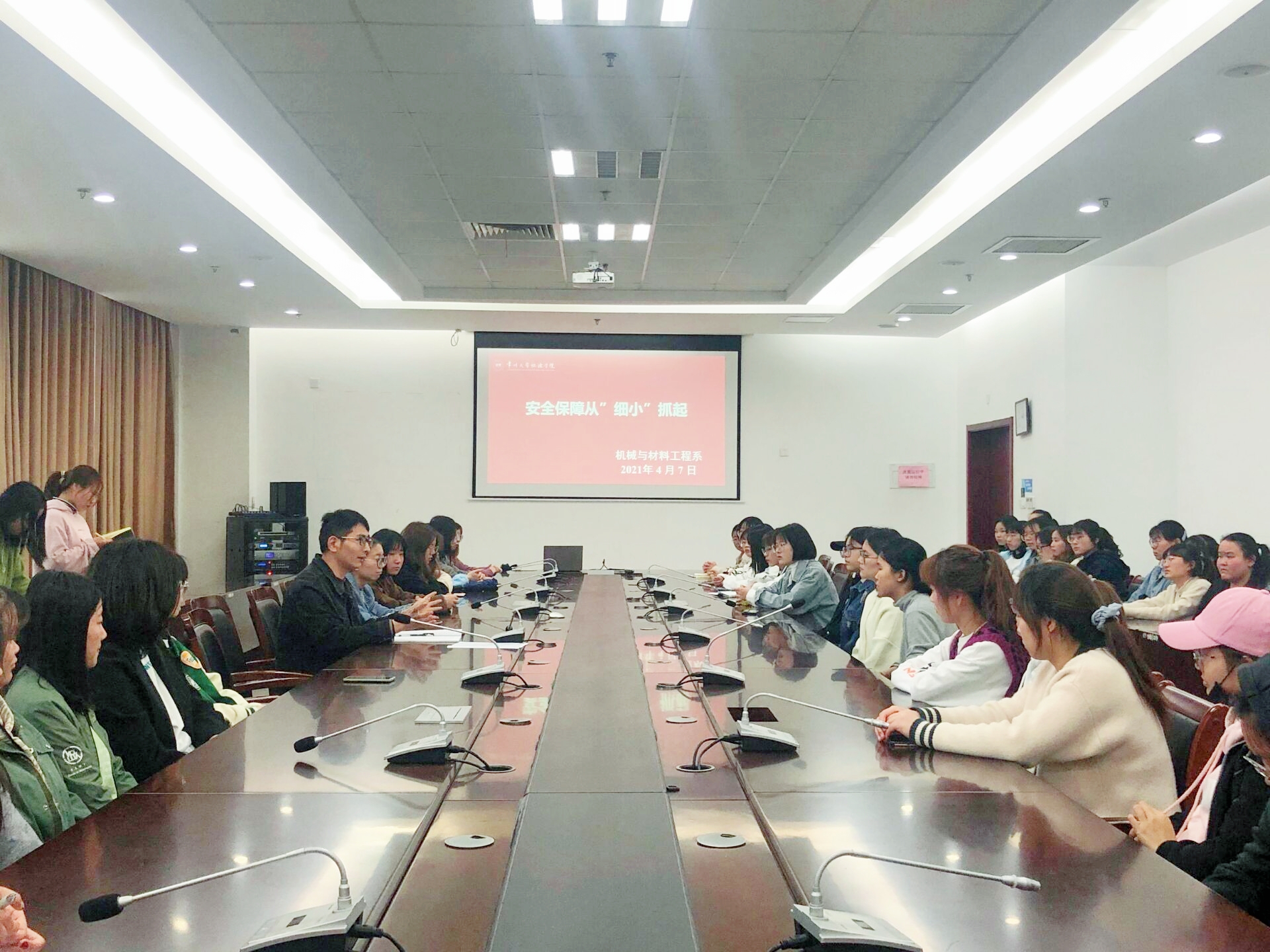 为了提高广大女同学的安全保障意识,4月7日下午,2019级机械设计制造及其自动化、高分子材料与工程专业全体女生在怀德楼第三会议室参加了安全教育主题会议,辅导员陈星宇出席。