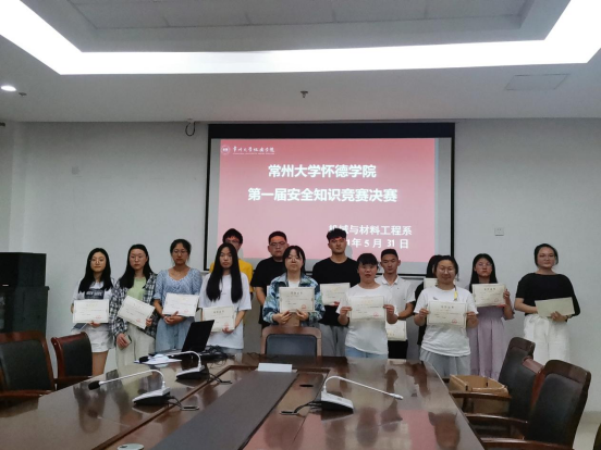 为了增强同学们的安全意识,由2019级机械与材料工程系安全保障工作部承办的第一届安全知识竞赛决赛于5月31日在怀德楼八楼第三会议室成功举办。