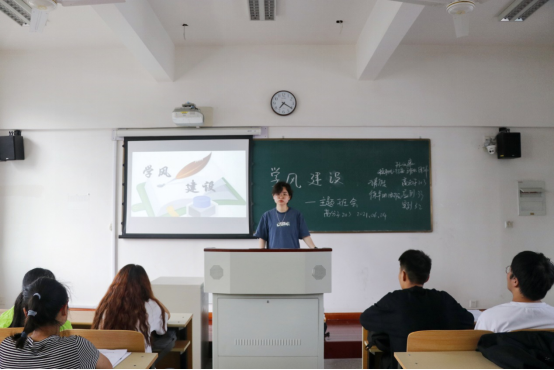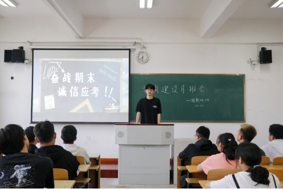 主题班会中,各班负责人围绕学风建设月的具体要求,指出班级同学学习态度、纪律观念、行为举止等问题,并要求各同学端正学习态度,遵守校规校纪。同时各班负责人从课堂秩序、考试纪律、学习规划等方面强调建设优良学风的重要性。