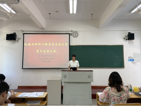 6月24日,机械与材料工程系学生党支部在A103召开党支部党员发展大会,对齐香凝等16名发展对象转为中共预备党员进行讨论和表决。会议由机械与材料工程系党总支副书记谷灵莉主持,全体学生党员及支委成员参加会议。