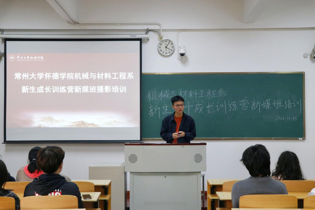 为进一步提高成长训练营新媒班成员的摄影技能,11月15日,机械与材料工程系于A201开展新生骨干成长训练营新媒班摄影培训,本次培训由大学生通讯社主席团成员张宗讯主讲,机械与材料工程系青年志愿团新闻传媒部副部长钱德成、学生会新闻传媒部部员、2021级成长训练营新闻新媒班全体成员参加此次会议。