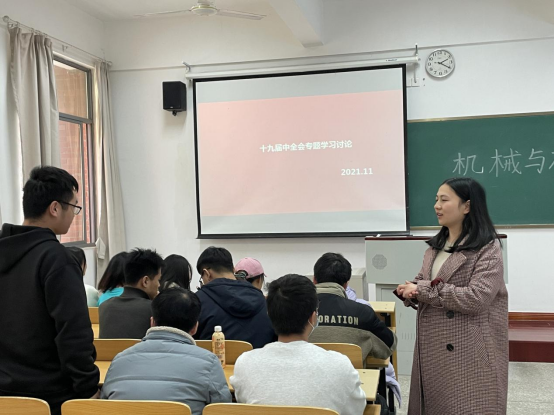 为深入了解党的百年奋斗重大成就和历史经验,在全国召开了十九届六中全会之后,11月28日,机械与材料工程系学生党支部发展对象在A108开展了十九届六中全会专题学习讨论,学生党支部书记张晓燕主持。