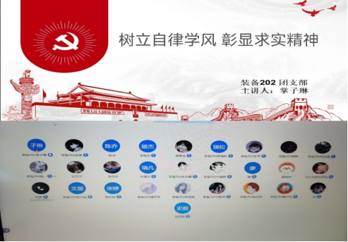 此次的团日活动以线上学习交流和分享的形式开展。会中,各班班委就疫情期间网课学习中出现的问题做出反馈并提出有效整改措施和高效的学习方法。会末,各班团支书强调网课学习阶段提高学习效率还须严于律己,求真务实。