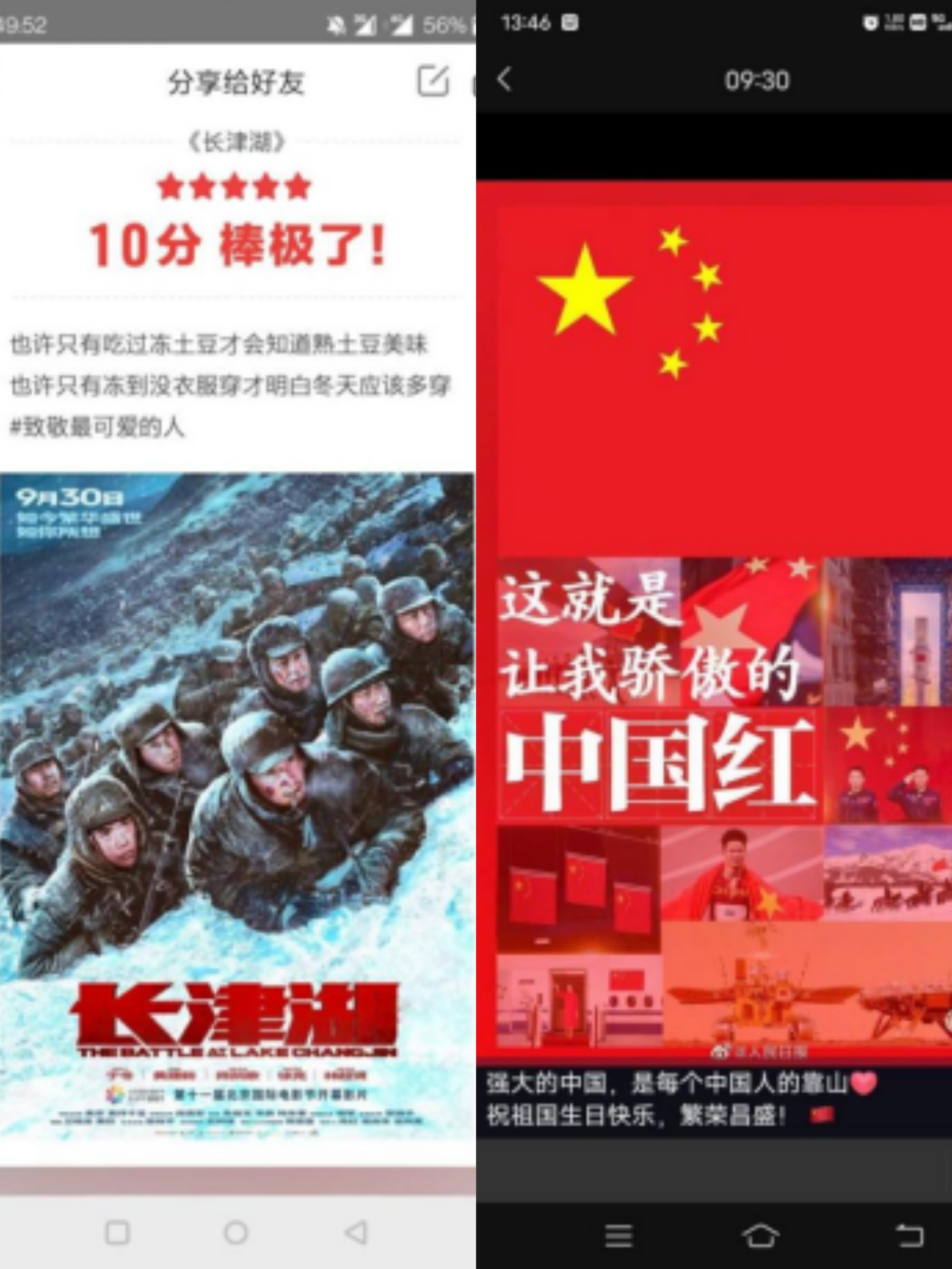 本次团日活动采用线下的形式开展,通过收集国庆朋友圈打卡、红色基地摄影、红色vlog等照片或视频进行相互分享,从而表达革命信仰伟大崇高以及红色政权来之不易的思想。