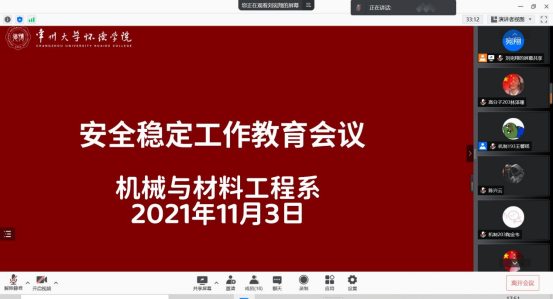 机械与材料工程系顺利开展安全稳定工作教育会议