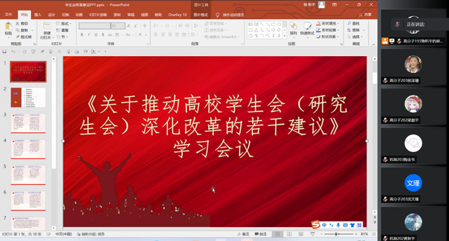 为进一步提升学生干部队伍素养,引导学生干部更好地为学生服务,4月28日,机械与材料工程系于线上顺利召开《学生会春季全员培训》学习会议,会议由系学生会执行主席骆昕宇主讲,全体学生会成员参加。