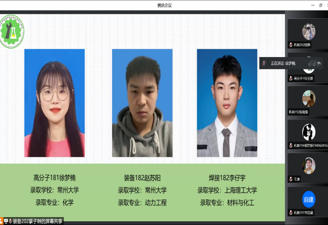 会议伊始,曹欣对学长学姐们及各位同学表示欢迎,并依次介绍了6位考研之星,他们以优异的成绩考入了中国石油大学、上海理工大学、常州大学等高校。