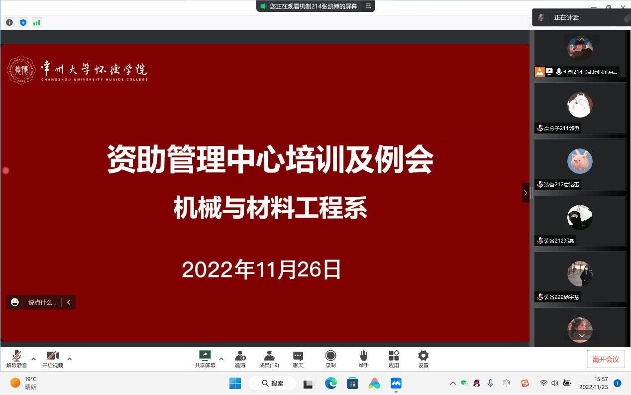 为在疫情期间顺利开展资助管理中心的各项工作,11月26日晚,机械与材料工程系于腾讯会议顺利举行资助管理中心第四讲,会议由资助管理中心组宣部部长郭勇主讲,资助管理中心全体成员参加。