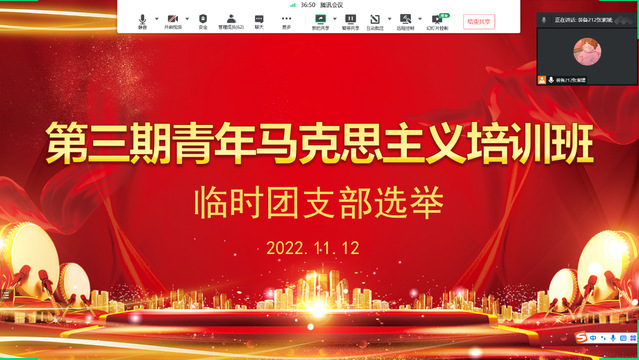 为加强青年对马克思主义的理解与认知,11月6日,机械与材料工程系于线上举办“青年马克思主义者培养工程”第三期培训班暨临时团支部支委选举大会。会议由系团学宣传部部长张紫媛主持,青马班全体学员参加。