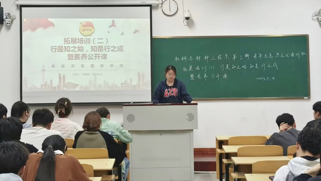 为引导青年学生坚定理想信念,提升大学生骨干的综合素质,4月14日,机械与材料工程系青马班于A110开展了“拓展培训”第二讲暨“行是知之始,知是行之成”素养公开课。本次公开课由团学宣传部部长张紫媛主讲,青马班全体学员参加。