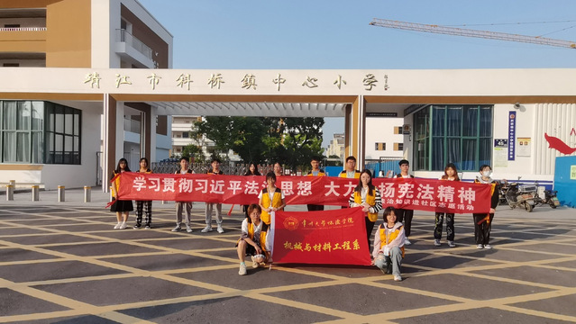 为了贯彻落实党的二十大精神,学习习近平总书记参加十四届全国人大一次会议江苏代表团审议时的重要讲话精神,坚持以习近平法治思想为指导,进一步加强青少年法治教育,5月12日下午,机械与材料工程系青年志愿团于靖江市斜桥镇中心小学开展了法治宣讲活动。此次活动由青年志愿团团长周燕带队,机械与材料工程系部分同学参加志愿活动。