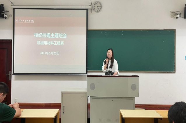 为了进一步加强我系学生的校纪校规教育,营造文明的班级氛围,养成良好的学习行为习惯,5月25日,机材系于A104开展了校纪校规主题班会。活动由辅导员王晶晶主持,21级大二学生参加。