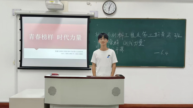为倡导和谐理念、培养和谐精神,进一步形成全社会共同的理想信念,6月4日,机械与材料工程系第三期青马班于A504开展了“青春榜样,时代力量”新思想公开课。本次新思想公开课由机械与材料工程系青马班纪检委员周顺主讲,青马班全体成员参加。