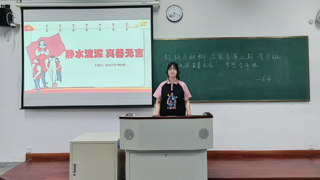 为鼓励同学们积极投身志愿活动,6月4日,机械与材料工程系第三期青马班于A504开展“静水流深,真善无言”新思想公开课。本次公开课由机械与材料工程系青马班纪检委员李婷婷主讲,青马班全体学员参加。
