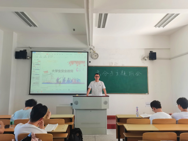 各班辅导员在班会上重点围绕交通安全、消防安全、食品安全及人身财产安全等方面进行讲解,通过例举近期部分高校发生的安全事件,引导学生树立正确的安全观和生命观,进一步增强安全意识,提高自我保护能力。同时也提醒同学们在校期间要注意寝室水电使用的安全,严禁使用违规电器,保持良好的寝室卫生和作息习惯,遵守校纪校规,当好自身安全的“第一责任人”。