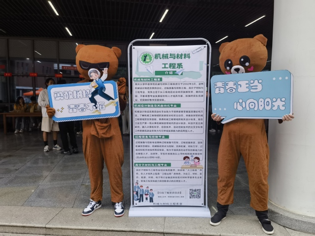 迎新期间,机械与材料工程系师生有序地进行着新生报到相关的引导和登记工作。迎新当天阴雨绵绵,我系心理站成员在公共服务区为新生和家长提供了雨披和雨伞,让迎新工作顺利有序的进行着。同时,心理站成员身披玩偶熊服装宣扬心理健康知识,让新同学了解大学生心理健康的重要性。迎新现场,新生辅导员,系兼心理站站长孙飞冉老师和系心理站成员们一同为新生点燃生日蜡烛,唱起生日歌,现场气氛和谐热闹。迎新小熊人偶手举字牌,为新生送上开学祝福。在报道点还设立了心愿墙,报道新生和家长在墙上写下了自己对未来的期望和寄语以及对学校的祝福。