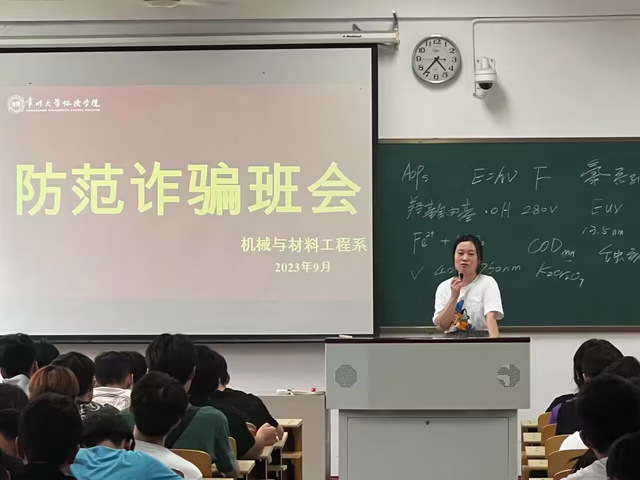 为进一步加强学生防诈骗意识,9月22日上午,机械与材料工程系各专业于各教室组织召开“防诈骗安全教育”主题班会。此次班会由各班辅导员主持召开,机械与材料工程系全体同学参加。