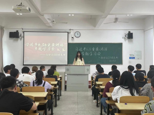 为深入学习贯彻习近平总书记“6.26”重要讲话的深刻内涵,激发同学们强国有我的青春激情。近日,机械与材料工程系各团支部开展了“习近平总书记‘6.26’重要讲话”专题学习会。本次专题学习会由机械与材料工程系团学组织部部长李婷婷主讲,我系全体团员参加。