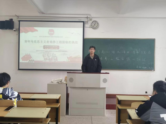 活动伊始,温钰阳讲述了新时代青年马克思主义者培养的目的,强调我们要坚持马克思主义,这有利于青年人不断奋进,是青年人发展力量的源头。然后,他指出了当下在青年马克思主义者培养工程存在风险与挑战,主要有需求与供给、不确定性和不稳定性、社会价值观这三个方面。同时,他也指出机遇与风险是并存的,世界和平的大环境和国家的迅速发展为青年的发展提供新机遇。最后,温钰阳对本次活动进行了总结,他提出我们要坚持青年马克思主义者的培养,走青年马克思主义者培养的新道路。