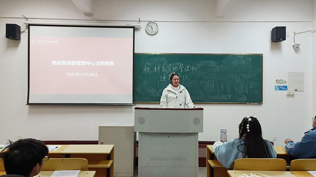 为总结本学期部员们在本部门的学习与成长,12月28日,机械与材料工程系资助管理中心于A102开展述职评议会议,本次会议由机械与材料工程系资助管理中心主任张凯博主持,机械与材料工程系资助管理中心指导老师蔡亚敏担任评委,机械与材料工程系资助管理中心全体部员参加。