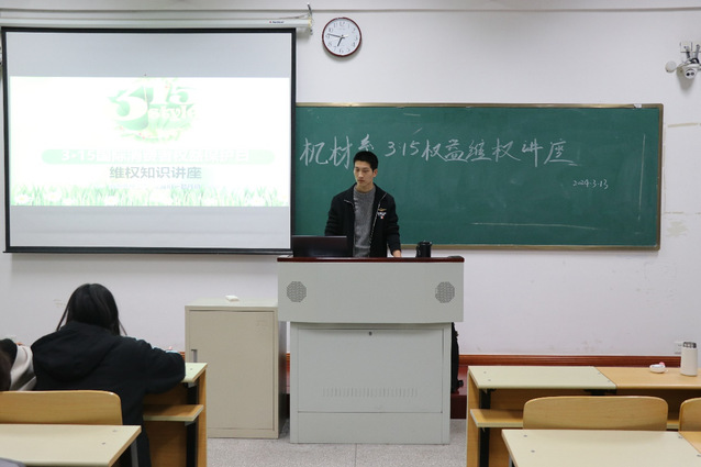 为进一步强化大学生维权意识,提高大学生维权素养,增强学生们的消费信心,引导大家科学、合理消费。3月13日晚,机械与材料工程系权益服务部于A510举办了“3·15”国际消费者权益日讲座。讲座由机械与材料工程系权益服务部部长刘昱栋主讲,机械与材料工程系全体大一同学参加。