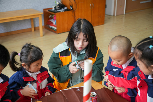活动开始,志愿者们通过PPT演示和生动有趣的讲解,让孩子们了解环保的重要性。接着,志愿者们与孩子们亲密互动,在手工制作环节,他们用废旧材料制成玩具和体育器材,并和孩子们进行了跳房子、投石器等互动小游戏。最后,孩子们通过自己手工制作玩具的过程,体验到了废物利用的乐趣。