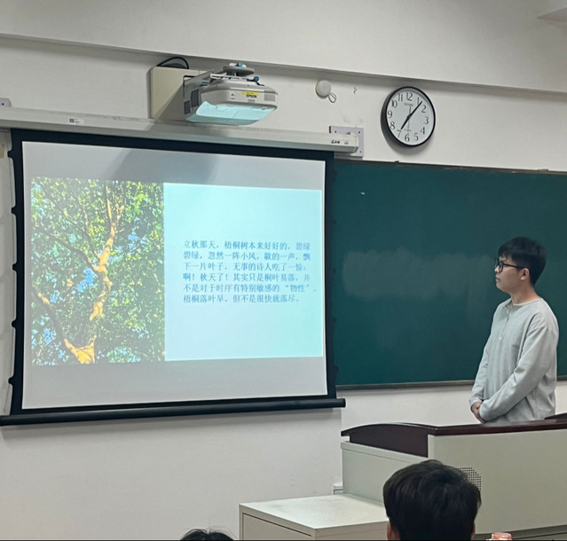 活动伊始,自律中心通过建立QQ群和班内宣传鼓励同学们积极参加。活动时,每个同学都认真热情的展示自己所喜爱的书籍,李国成、戴睿鸿、宁文君、姜可心四位同学先后分别介绍了《罗生门》、《人间草木》、《被讨厌的勇气》,《有人自林中堕落》四本书,每一本书都极大吸引观众和评委的兴趣,让人沉迷其中。活动最后,自律中心负责人鼓励同学们多读书,拓宽自己的读书领域。不仅要读国内书籍,也要读外国书籍。取其精华,去其糟粕。